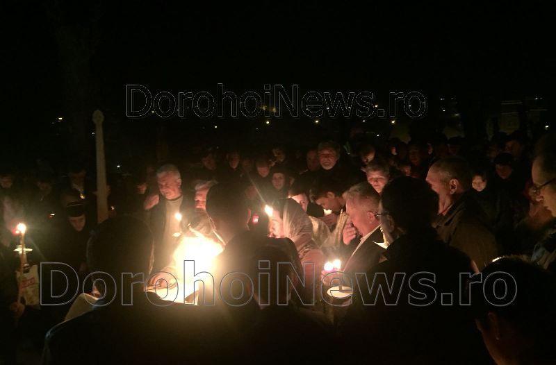 Străzile oraşului s-au transformat pentru scurt timp în adevărate râuri de lumină, credincioşii îndreptându-se cu lumânările aprinse către Cimitirul din Dorohoi unde au lăsat o lumânare aprinsă la mormintele celor apropiați sau spre propriile locuinţe.