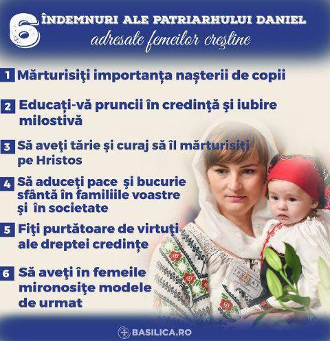 Este vorba de cele şase îndemnuri ale Patriarhului Daniel adresate femeilor creştine, potrivit agenţiei Basilica.