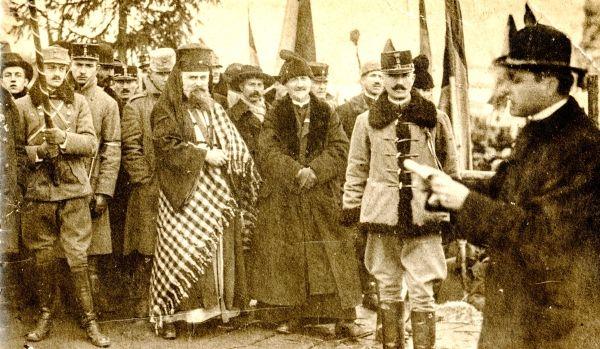 Am îmbrățișat pe primii bătrâni cu plete sure, care la trecerea noastră se descopereau și-și făceau cruce, ridicând ochii umezi spre cer și zicând: «Ajută-le, Doamne!». Farmacistul sublocotenent Marino Gh. și mai mulți sanitari, mișcați la aceste scene, băteau din palme și strigau: Bravo, părinte, sa trăiești!.