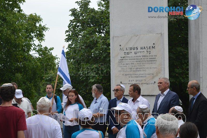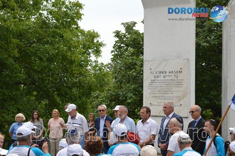 După încheierea ceremoniei de deschidere, participanții la Marș s-au deplasat spre Cimitirul Evreiesc, unde a avut loc un moment de comemorare al evreilor uciși în Pogromul de la Dorohoi, prin aprinderea câtorva candele de către rabini și generali de armată evrei, urmat de interpretarea imnului național al Israelului de către cei prezenți, conduși de rabinul Iosif Wasserman. De asemenea, câțiva dintre turiștii care au rădăcini în orașul Dorohoi au ținut câteva discursuri în memoria celor căzuți.