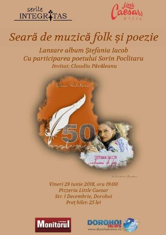 Se va lansa albumul Ștefaniei Iacob, eveniment la care va participa și poetul Sorin Poclitaru și va fi invitat Claudiu Păvăleanu.