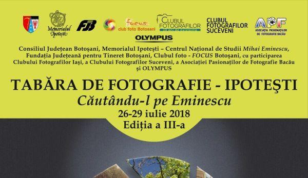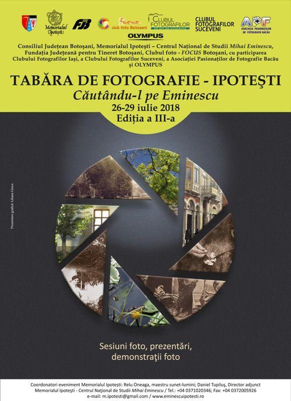 Fotografi din Botoşani, Iaşi, Bacău şi Suceava vor fi veni, în perioada 26-29 iulie 2018, la Ipoteşti pentru a participa la tabăra de artă fotografică organizată de Memorialul Ipoteşti – Centrul Naţional de Studii Mihai Eminescu.