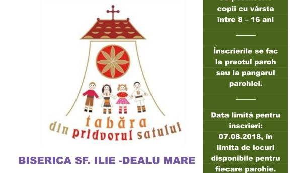 Tabăra începe miercuri 8.08.2018 – orele 12.00 la biserica din Dealu Mare unde se vor desfășura 3 zile de activități, respectiv miercuri, joi și sâmbătă.