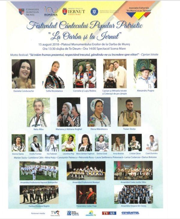 Sub motto-ul festivalului: „Sa traim frumos prezentul, respectand trecutul, gandindu-ne cu incredere spre viitor”, prin programul prezentat vom aduce un omagiu alaturi de marii artisti ai tarii eroilor neamului cazuti la datorie. Festivalul este organizat de Ministerul Culturii si Identitatii Nationale, Consiliul Judetean Mures, Primaria orasului Iernut si Asociatia Culturala „Pe Mures si pe Tarnava”.