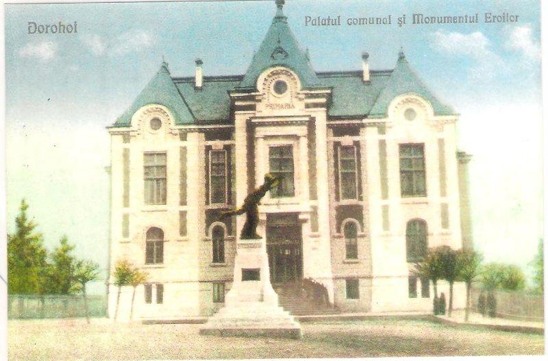 Tot în acest an, 1923, s-a înfiinţat la Dorohoi un comitet care avea sarcina de a ridica în oraş un monument dedicat eroilor dorohoieni. La 24 mai 1923 conducerea cercului de recrutare „Dragoş" se adresează primăriei locale solicitând stabilirea locului unde să fie aranjat monumentul eroilor. În continuarea solicitării, comandantul Centrului de Recrutare Dragoş, colonelul D. Sion scrie: „Suntem de părere, după cum chiar şi sculptorul a afirmat când a fost la Dorohoi,că singurul loc pentru a aşeza acest monument este numai Piaţa din faţa palatului Comunal în locul unde astăzi este statuia lui M.Kogălniceanu. Rezultatul vă rugăm a ni-l comunica cât mai urgent întrucât în cursul lunei Iunie începe aranjarea soclului de piatră a acestui monumen”. Profesorul de desen de la gimnaziul dorohoian de băieţi „Gr. Ghica VV" N. Popovici, desemnat a rezolva această problemă, a comunicat primăriei la 27 iulie 1923: „Părerea mea este că locul cel mai potrivit din punct de vedere estetic ar fi în faţa primăriei la 13,40 m departe de marginea trotuarului din faţa primăriei, pe o linie perpendiculară pe mijlocul faţadei clădirei, astfel ca soclul monumentului să fie la linie cu grilajele grădinei din dreapta şi din stânga".