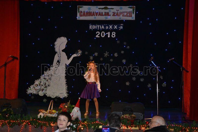 Concertul tradițional „Carnavalul Zăpezii”, ediţia a XX-a, a continuat luni, 17 decembrie 2018, la Sala Teatrului Dorohoi. Dacă prima zi a fost dedicată teatrului și folclorului, în cea de-a doua zi de spectacol, au evoluat elevi de la cercurile: