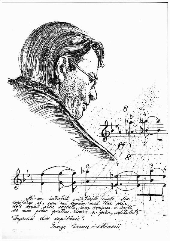 George Enescu, este pilonul de referinţă pentru cultura noastră muzicală-muzica clasică. Enescu, a impus prin întreaga sa creaţie interpretativă şi compoziţională, prin numele său de mare compozitor şi dirijor, România, pe tărâmul culturii din Europa, dar şi din întreaga lume. Amintesc toate aceste lucruri despre George Enescu din multitudinea evenimentelor de mare presigiu despre acest compozitor când anul 2005,a fost declarat de către - UNESCO - „ANUL ENESCU„ eu, i-am dedicat o întreagă expoziţie personală de grafică în peniţă şi acuarelă, care a fost deschisă la Complexul Muzeeal Bucovina din oraşul Suceava în luna octombrie.