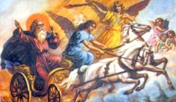 In cer, el cutreiera intr-o trasura cu roti de foc trasa de doi sau de patru cai albi inaripati si fulgera si trasneste dracii cu biciul sau de foc pentru a-i pedepsi pentru raul pe care i l-au facut. Deoarece dracii se ascund pe pamant, prin arbori, pe sub streasina caselor, in turlele bisericilor si chiar in trupul unor animale, Sfantul Ilie trasneste naprasnic pentru ca acestia sa nu scape.