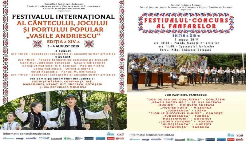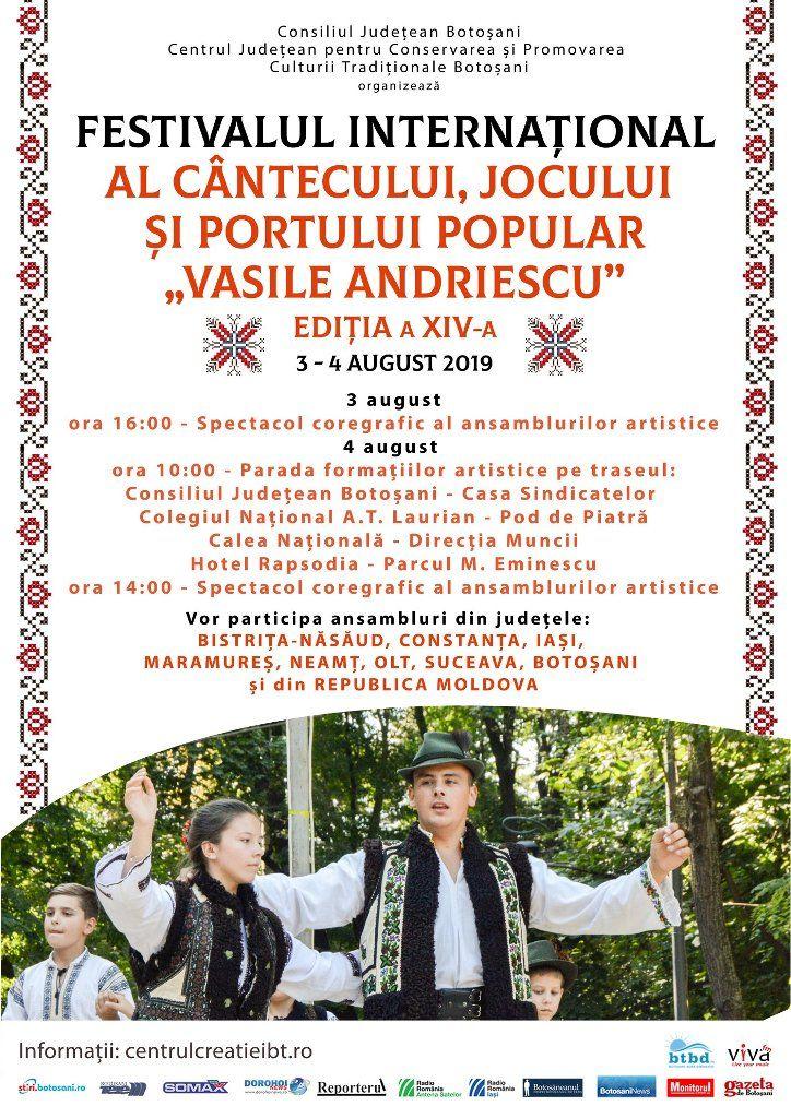 Centrul Judeţean pentru Conservarea şi Promovarea Culturii Tradiţionale Botoşani, instituţie publică de cultură aflată în subordinea Consiliului Judeţean Botoşani, în colaborare cu Primăria şi Consiliul Local al Municipiului Botoşani, organizează Festivalul Internaţional al Cântecului, Jocului şi Portului Popular „Vasile Andriescu” şi Festivalul fanfarelor.