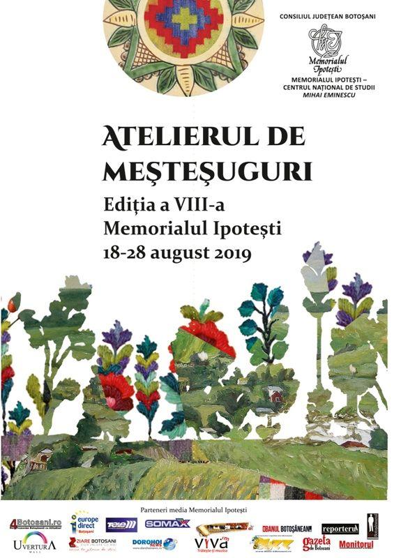 În cadrul activităților culturale planificate de Memorialul Ipotești – Centrul Național de Studii Mihai Eminescu pe anul 2019, în perioada 18-28 august, se va desfășura a VIII-a ediție a Atelierului de meșteșuguri, la care vor participa artiști plastici (pictură, sculptură).