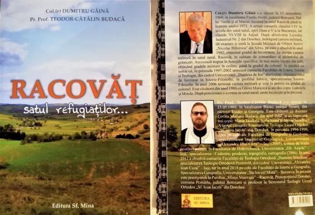 Luni, 09 decembrie 2019, ora 16.00, la Seminarul Teologic Liceal „Sf. Ioan Iacob”, din Dorohoi, în sala de festivități Pimen Mitropolitul, va avea loc lansarea volumului „RACOVĂȚ- SATUL REFUGIAȚILOR”, autori Col.(r) Dumitru Găină și Pr. Prof. Teodor Cătălin Budacă.
