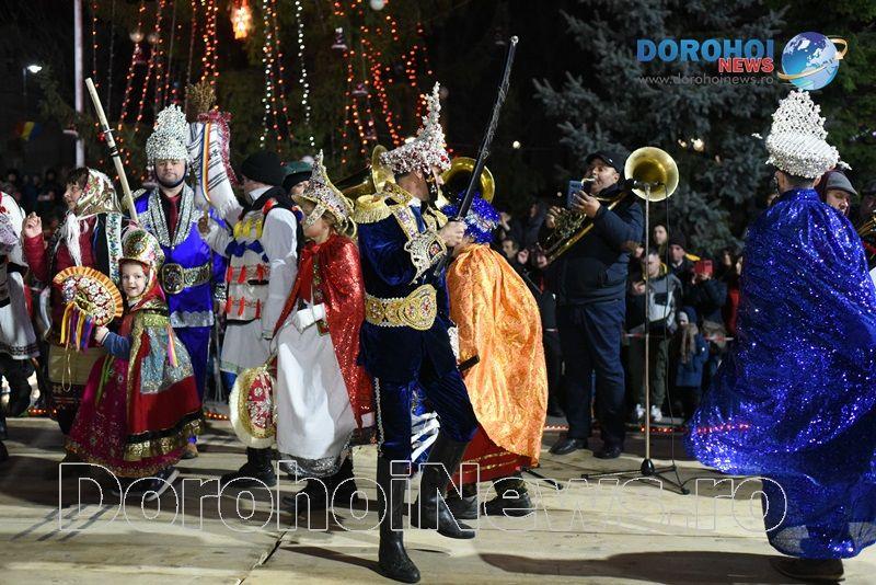 Îmbrăcați de sărbătoare, cu o coregrafie bine pregătită și urături personalizate, grupurile organizate au prezentat publicului dorohoian și oficialităților locale datinile și obiceiurile specifice momentului și zonei.