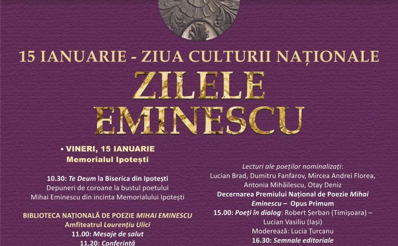 Evenimentele vor avea loc pe 15 ianuarie și vor începe, la ora 10.30, cu Te Deum la Bisericuța familiei Eminovici din Ipotești, urmat de depuneri de coroane la statuia poetului Mihai Eminescu de la Memorial.
