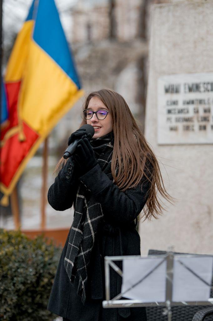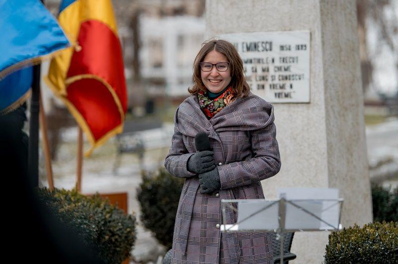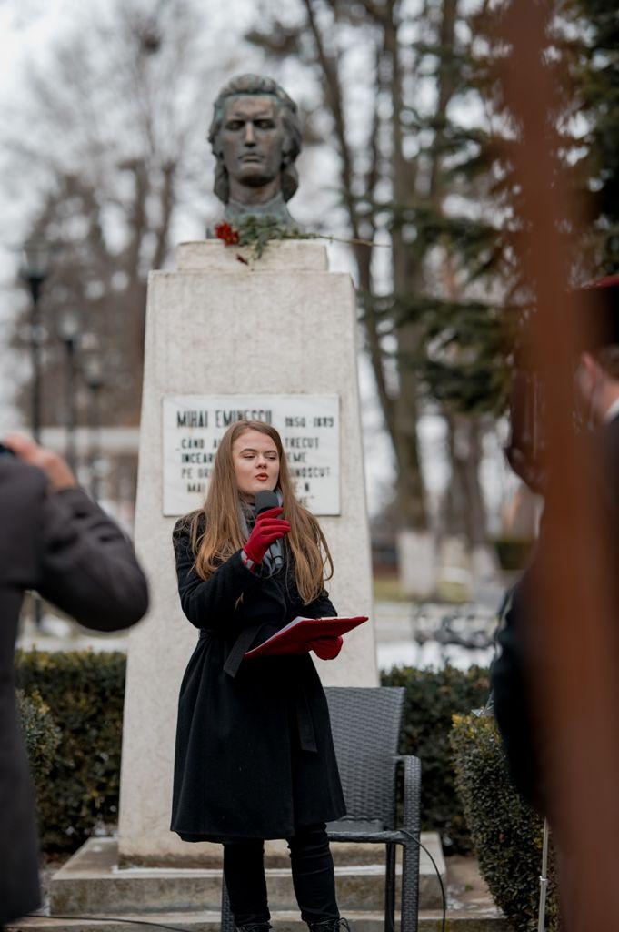„Astăzi, poate mai mult ca niciodată îl simțim pe Eminescu avocat al libertății și pioner al ideii naționale. A apărat aristrocrația spiritului și noblețea idealurilor românești. Eminescu este cel care rămâne în amintirea noastră ca unul dintre cei mai mari promotori al originalității, al trăirii autentice și al creativității românești, cea care ne menține pe harta lumii în orice timpuri, chiar și în cele dificile. În misiunea noastră de a susține și de a împlini această frumoasă viziune ne stau alături distinșii noștrii parteneri cărora le mulțumim ori de câte ori avem ocazia, dar mai ales astăzi de Ziua Culturii Naționale. Mulțumim pentru sonorizare domnului profesor Liviu Ciulei, precum și lui Ștefan Chichioacă pentru minunatele fotografii realizate.”, ( Manager Casa de Cultură – Emanuela Chitic Ciurciun )