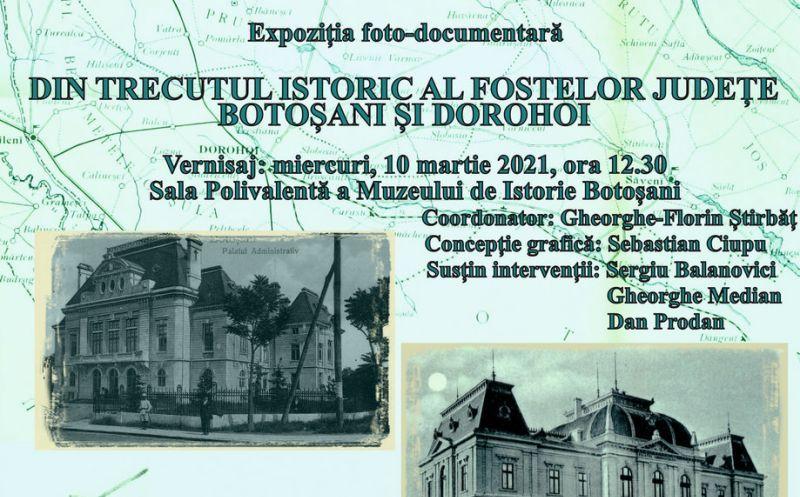 Muzeul Judeţean Botoșani, în colaborare cu Serviciul Județean Botoșani al Arhivelor Naționale și Biblioteca Județeană „Mihai Eminescu” Botoșani, vă invită miercuri, 10 martie 2021, ora 12.30, în Sala Polivalentă a Muzeului de Istorie Botoşani, la vernisajul expoziţiei foto-documentare „Din trecutul istoric al fostelor județe Botoșani și Dorohoi”.