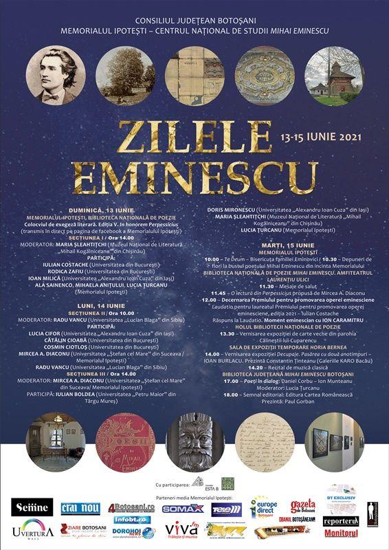 Memorialul Ipotești – Centrul Național de Studii „Mihai Eminescu” organizează, în perioada, 13-15 iunie 2021, ediția din iunie a Zilelor Eminescu.