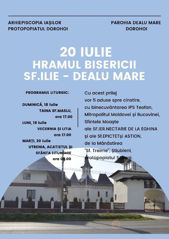 Pentru parohia Dealu Mare, data de 20 iulie reprezintă un moment de mare bucurie și de frumoase împliniri, pentru că este ziua în care îl cinstim pe Sfântul Ilie, ocrotitorul și mijlocitorul nostru înaintea tronului Sfintei Treimi.