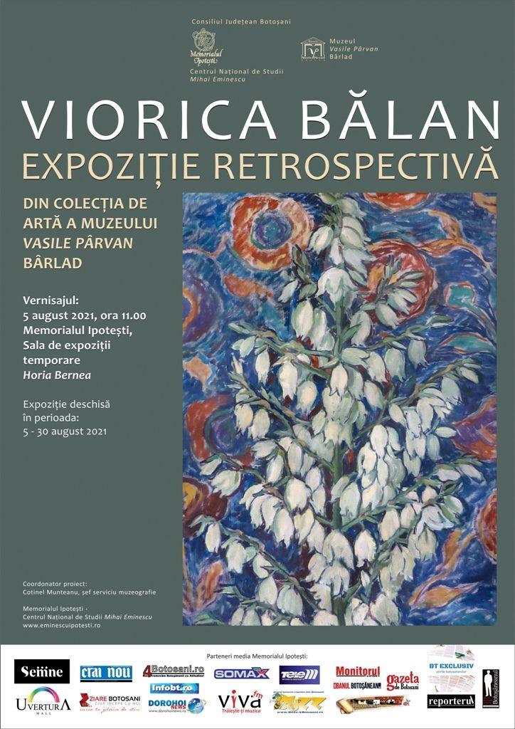 Memorialul Ipotești – Centrul Național de Studii „Mihai Eminescu”, în colaborare cu Muzeul de Istorie „Vasile Pârvan” din Bârlad, va găzdui, în sala de expoziții „Horia Bernea”, lucrările de artă ale pictoriței ieșene Viorica Rodica Bălan.