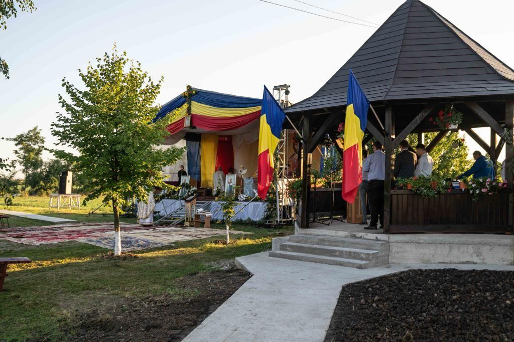 În continuare, slujba Sfintei Liturghii a fost săvârșită pe un podium special amenajat în apropierea lăcașului de cult, de către Înaltpreasfințitul Părinte Teofan, Mitropolitul Moldovei și Bucovinei, alături de Preasfințitul Părinte Veniamin, Episcopul Basarabiei de Sud, împreună cu un sobor de preoți și diaconi.
