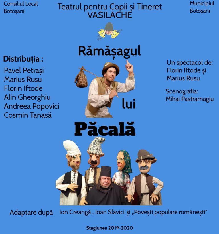 - duminică, 15 august 2021, ora 10:00 - spectacolul "Rămăşagul lui Păcală", după Ion Creangă, Ioan Slavici şi Poveşti populare româneşti