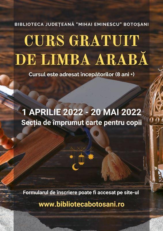 Biblioteca Județeană „Mihai Eminescu” Botoșani organizează în perioada 1 aprilie  – 20 mai 2022 cursuri gratuite de limba arabă dedicate începătorilor.