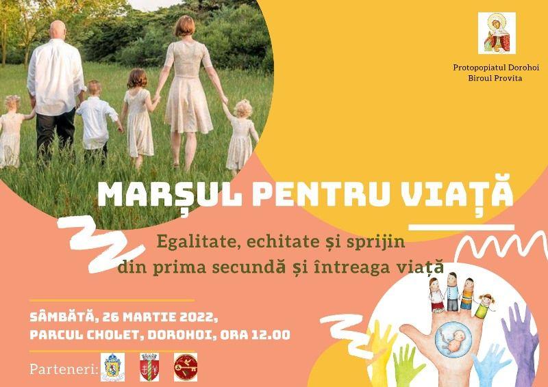 Pentru fiecare copil, egalitatea de șanse începe înainte de a veni pe lume, iar aceasta înseamnă ca mama lui să fie sprijinită să-l nască. În acest sens, campania și-a propus să combată creșterea alarmată a avorturilor din România și conștientizarea faptul că nașterea este o etapă fundamentală în viață. Și noua ediție a momentului „Marșul pentru viață”, desfășurat în Municipiul Dorohoi, face parte din această etapă.