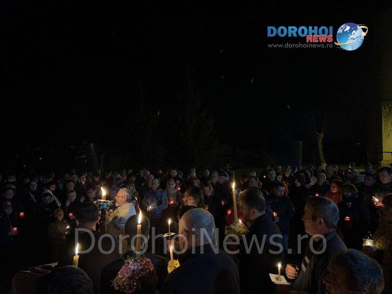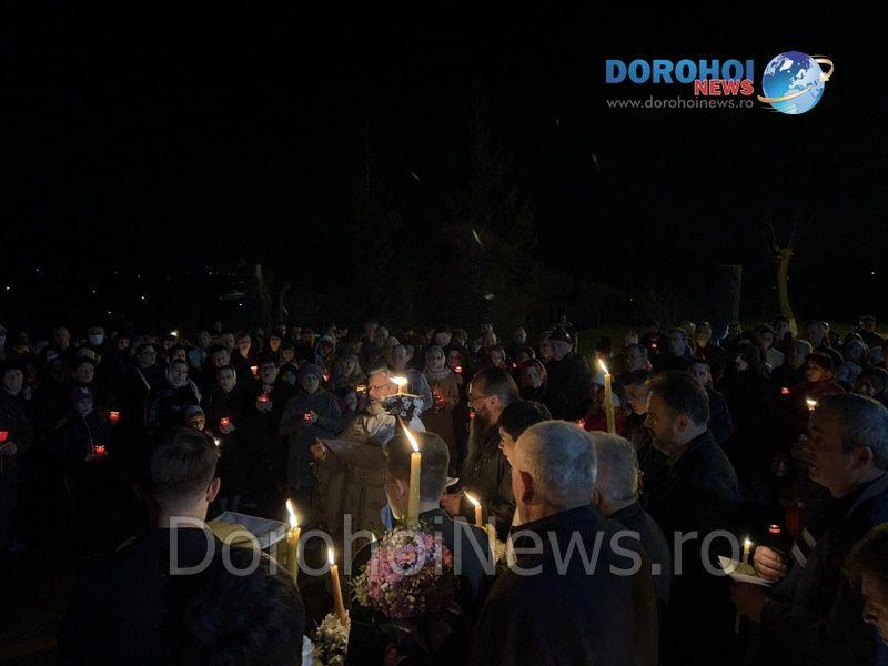 Străzile oraşului s-au transformat pentru scurt timp în adevărate râuri de lumină, credincioşii îndreptându-se cu lumânările aprinse către Cimitirul din Dorohoi unde au lăsat o lumânare aprinsă la mormintele celor apropiați sau spre propriile locuinţe.