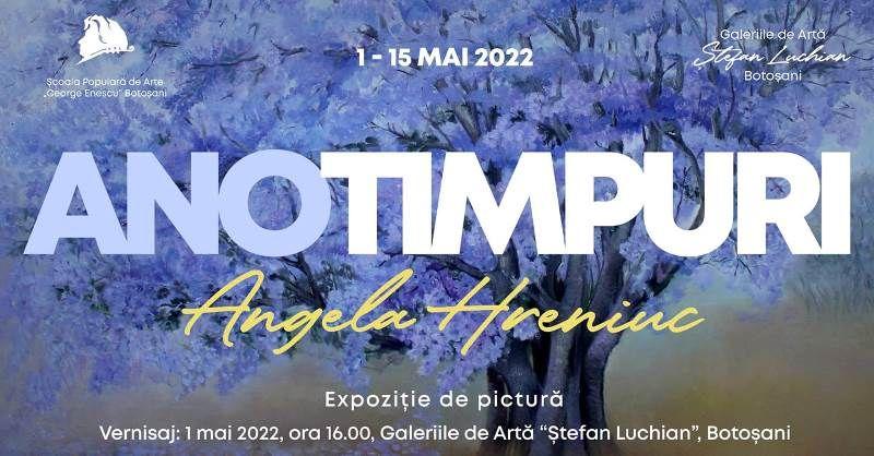 Muzeul Judeţean Botoşani găzduiește, în perioada 1-15 mai 2022, în spațiul Galeriilor de Artă ,,Ștefan Luchianˮ Botoșani, expoziția „Anotimpuri”, prezentând lucrări de pictură semnate de Angela Hreniuc, din Botoșani.