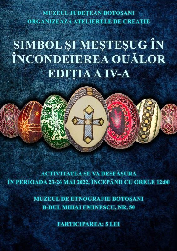 După modelul celorlalte trei ediții anterioare, această activitate urmărește conservarea și promovarea patrimoniului imaterial etnografic într-o manieră interactivă, care să îmbine atât cunoștințele teoretice referitoare la arta încondeierii ouălor, practicată în perioada cuprinsă între Învierea Domnului și Înălțare, cât și deprinderea efectivă de a încondeia ouă. Meșteri pricepuți, elevii de la Liceul Tehnologic Bucecea, coordonați de prof. Maria Ursulean, vor sprijini demersul inițiatic al participanților în lumea acestui meșteșug popular devenit artă.