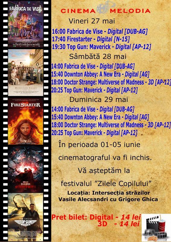 Filme de acţiune, animaţie, actiune dar şi thriller, este oferta cu care Cinematograful Melodia vine în această săptămână. Biletele pot fi rezervate la numărul de telefon: 0729000094.
