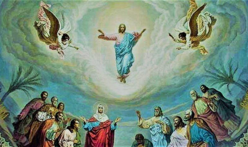 Hristos S-a înălțat la cer de pe Muntele Măslinilor, în văzul Apostolilor și a doi îngeri. Îngerii le-au vorbit ucenicilor despre a doua venire a lui Hristos, ca aceștia să nu se lase copleșiți de durerea despărțirii.