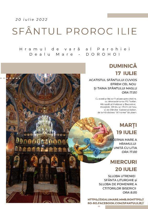 Pentru parohia Dealu Mare, data de 20 iulie reprezintă un moment de mare bucurie, pentru că este ziua în care întreaga Biserică îl cinstește pe Sfântul Ilie, unul dintre marii proroci ai Vechiului Testament.