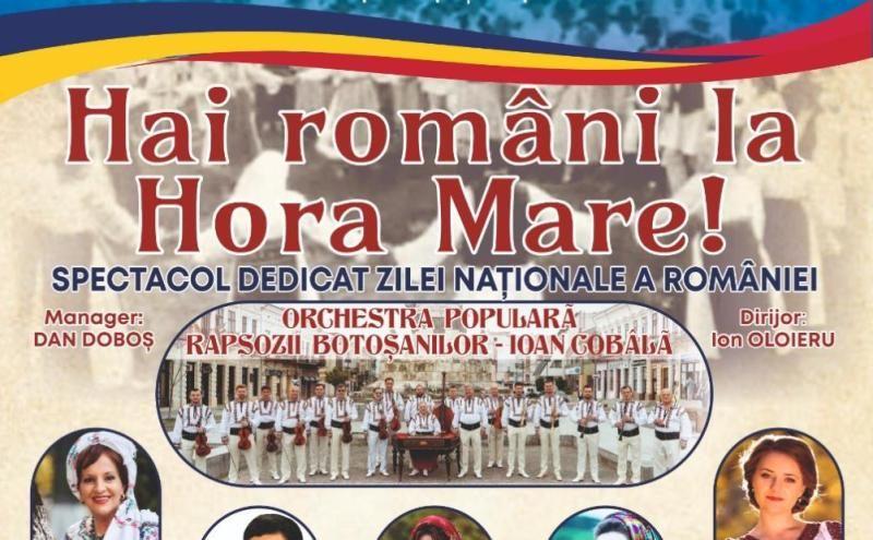 Orchestra „Rapsozii Botoșanilor” Ioan Cobâlă vă invită la spectacolul „Hai Români la Hora Mare” dedicat Zilei Naționale a României, ce va avea loc la Cinematograful Unirea din Botoșani pe 1 decembrie 2022, începând cu ora 17:30.