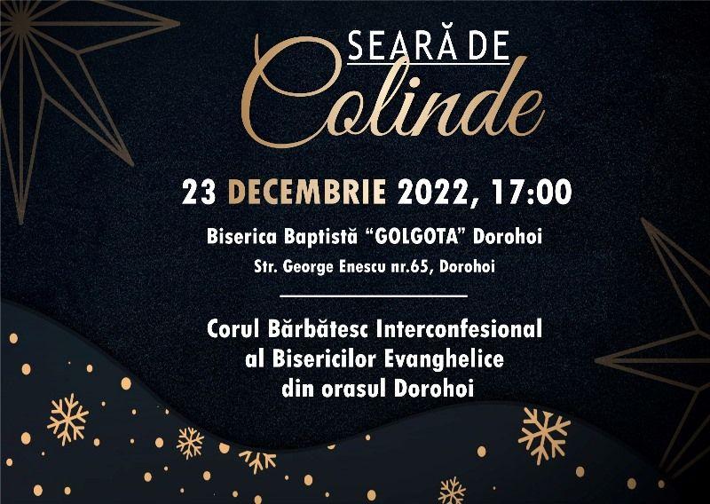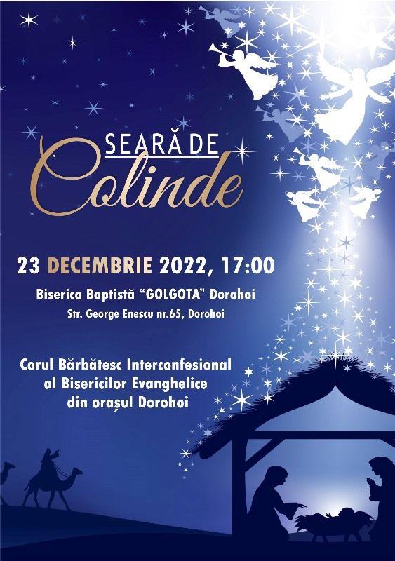 Seara de colinde va fi organizată la Biserica Baptistă „Golgota” din Dorohoi, strada George Enescu nr.65.