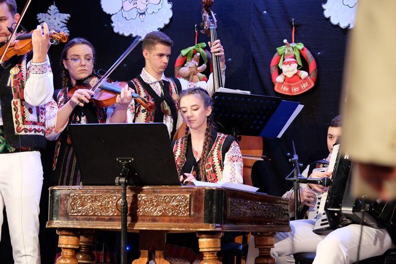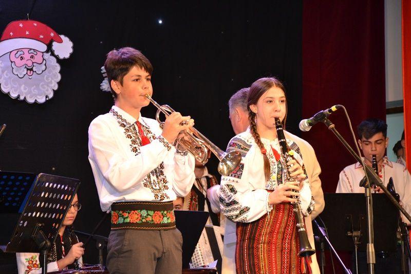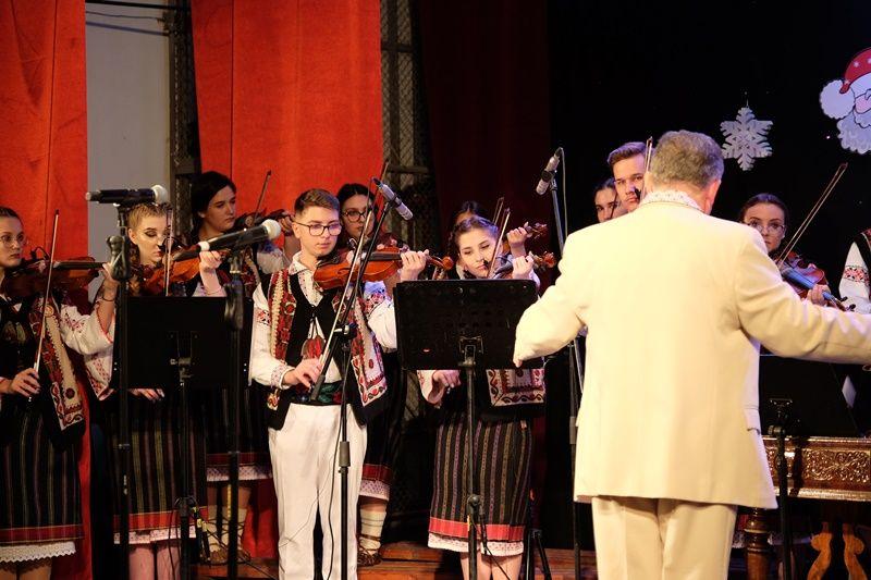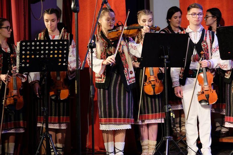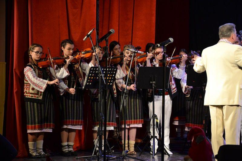 Seara a continuat cu un regal folcloric, sub bagheta dirijorului, prof. Marcel Dupu. Primii care au cântat pe scena Sălii Teatrului au fost elevii din Orchestra mică „Mugurelul” care au demonstrat perseverență pe drumul lor către performanță.