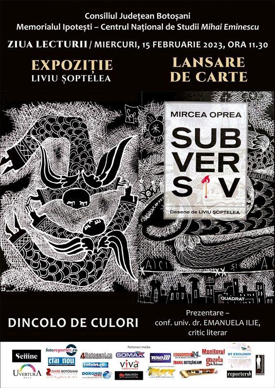 Astfel, pe 15 februarie, începând cu ora 11.30, în Sala „Horia Bernea”, publicul este invitat să participe la lansarea unei noi cărți a scriitorului botoșănean Mircea Oprea – „Subversiv”. Poet, prozator, eseist, critic literar și cronicar dramatic, Mircea Oprea propune publicului, de data aceasta, un volum de aforisme, care, de altfel, nu este primul de acest gen în bibliografia sa. Autorul a mai publicat culegerile de aforisme „Vârstele mirării” (Editura Tipo Moldova, 2017) și „Reacții adverse” (Editura Quadrat, Botoșani, 2019), fiind prezent și în antologiile de aforisme românești, apărute în italiană – „Antologia dell'aforisma romeno contemporaneo”, Genesi Editrice, Torino, 2013 și în franceză – „Aphorismes roumains d'aujourd'hui”, Stellamaris, Brest Franța, 2019. Cititorii care îi frecventează scrierile au avut ocazia să descopere aceste forme concise de exprimare și în alte cărți ale sale. De altfel, autorul însuși, prin definiția pe care o dă aforismului în volumul „Subversive”, sugerează că acesta nu este decât o formă rezumativă a unei creații mai largi: „formă lapidară, urgentă și irepresibilă a unui eseu, a unei poezii, a unui sentiment – trăiri lăsate fără eșafodaj, fără premisele silogismului, mansarde cu hornuri fumegânde plutind peste temelia ce nu vrea să se așeze pe pământ”. Prin urmare, cititorul va regăsi  în acest volum fragmente gnomice din scrierile anterioare ale autorului și își va putea crea un orizont de așteptare pentru noi texte ale acestuia. Contrar intenției de a fi complet sincer doar în gândurile sale („în gândurile mele voi fi complet sincer, cum nu voi fi, probabil, în vorbele sale”, scrie Mircea Oprea), autorul se dezvăluie cu toate luminile și umbrele sale, chiar dacă crede că e „nepotrivit”, ca și cum „ar ieși în oraș în papuci și în halat de casă”.
