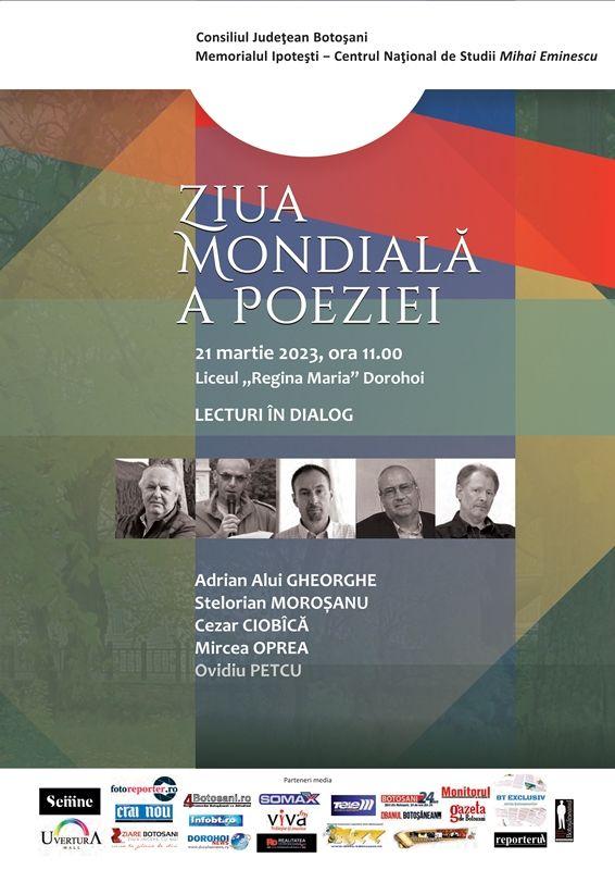 Memorialul Ipotești – Centrul Național de Studii „Mihai Eminescu”, instituție din subordinea Consiliului Județean Botoșani, organizează, pe 21 martie 2023, o serie de activități dedicate poeziei.