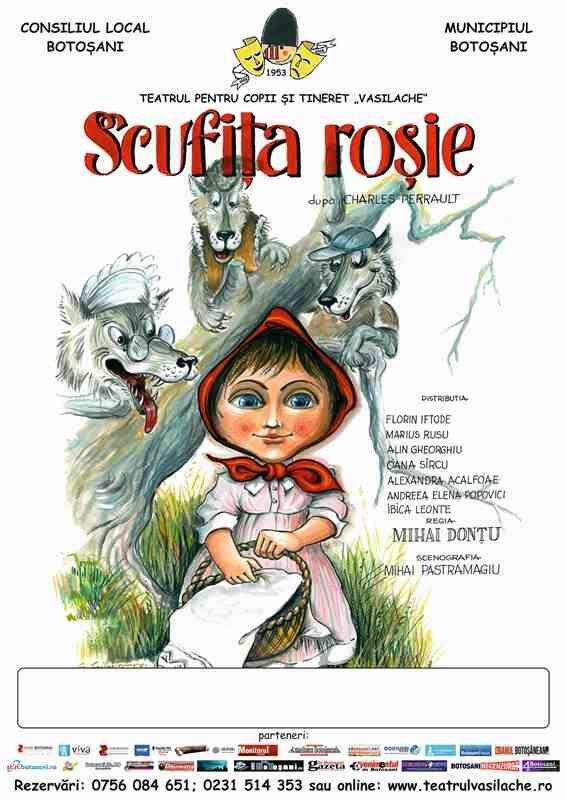 Spectacolul „Scufița roșie” este o adaptare de Mihai Donțu, după Charles Perrault. Regia este semnată de Mihai Donţu, iar scenografia îi aparţine lui Mihai Pastramagiu.