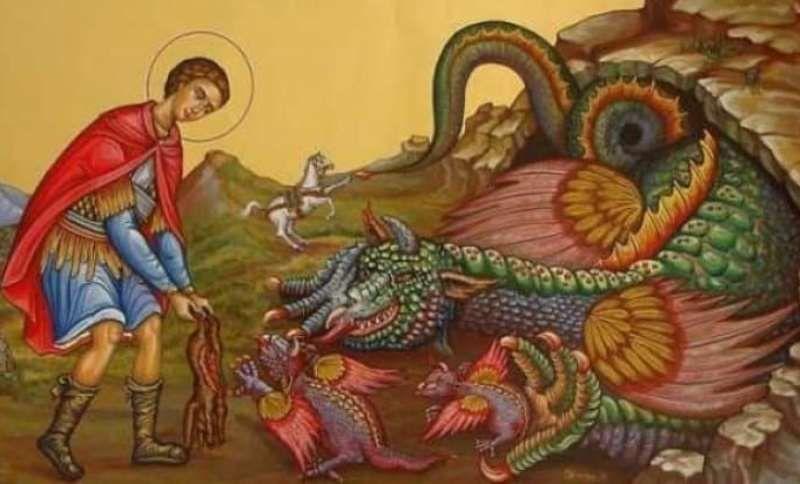 Cele mai frecvente reprezentări grafice a Sf. Gheorghe este aceea de "omorâtor al balaurului", ilustrând legendele care povestesc că el ucide un balaurul care amenința o cetate.