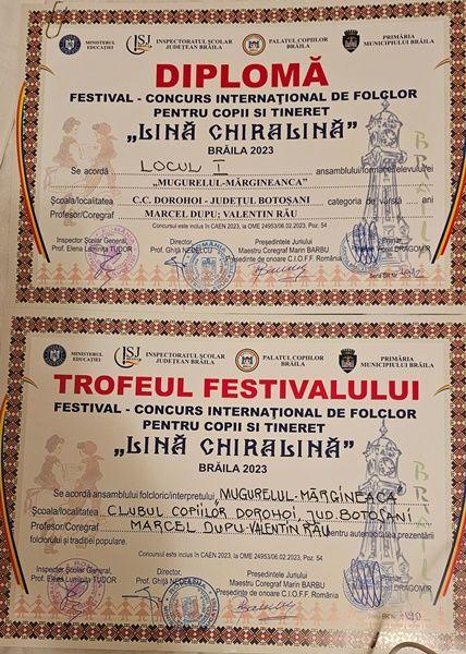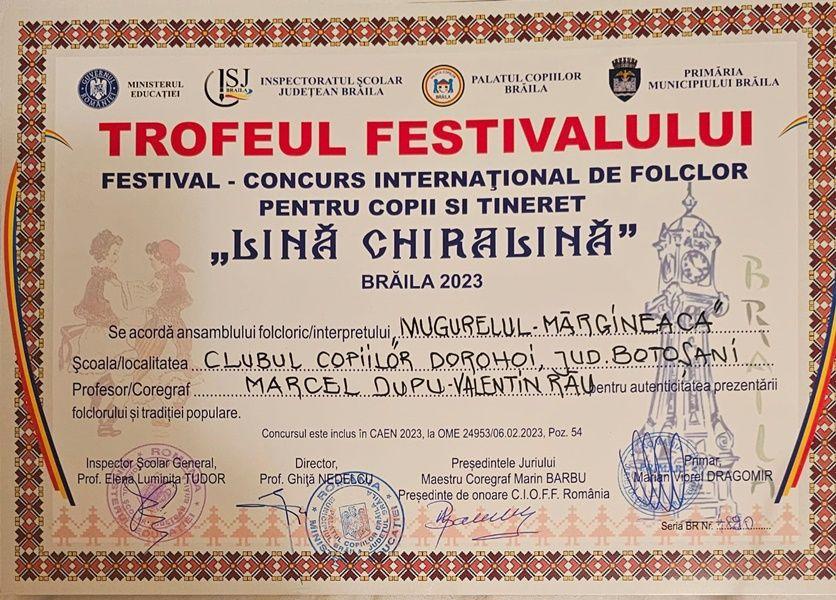 Trofeul festivalului a fost atribuit Ansamblului de cântece și dansuri populare „Mugurelul-Mărgineanca” al Clubului Copiilor Dorohoi. Conducerea muzicală, prof. Marcel Dupu. Coregrafia, maestru coregraf Valentin Rău.