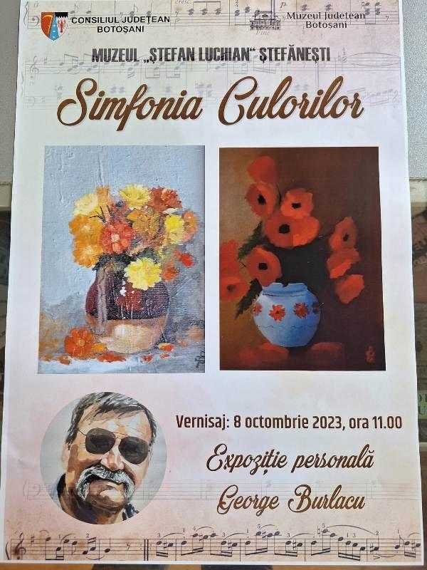 Muzeul Județean Botoșani, Secția Artă Plastică – Etnografie, prezintă în perioada 8 octombrie – 8 decembrie 2023 expoziția personală „Simfonia culorilor”, cuprinzând creațiile artistului plastic George Burlacu. Expoziția etalează lucrări în ulei pe pânză, executate în cuțit și penson, orizontul tematic al operelor încorporând natura moartă, peisajul, portretul și tablourile în miniatură.