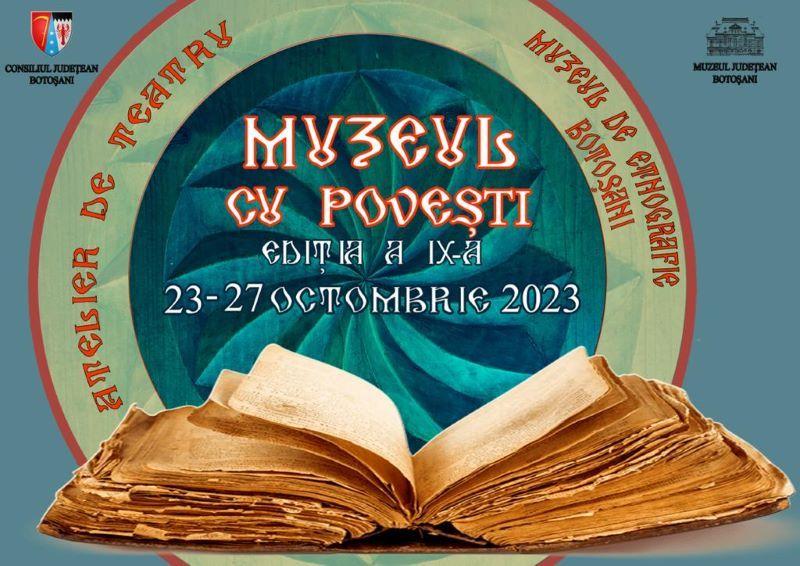 Muzeul Județean Botoşani, Secția de Artă Plastică – Etnografie, derulează, în perioada 23-27 octombrie 2023, în intervalul orar 9.00-13.00, la Muzeul de Etnografie, atelierul de teatru intitulat „Muzeul cu poveşti”.