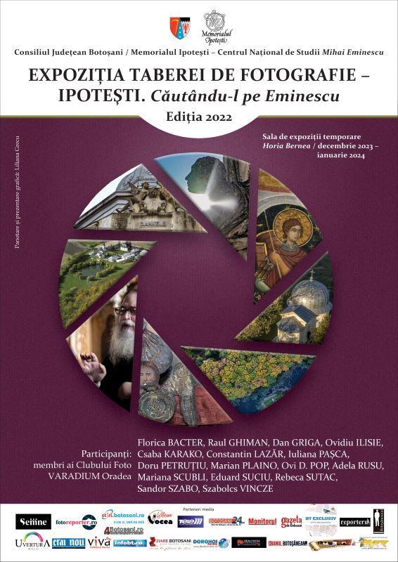 În perioada decembrie 2023 – ianuarie 2024 Memorialul Ipoteşti vă invită să vizualizaţi o selecție din materialul fotografic realizat de participanții la Tabăra de fotografie IPOTEȘTI. Căutându-l pe Eminescu, desfășurată în perioada 20-23 octombrie 2022. Fotografiile au fost realizate în urma tururilor și sesiunilor foto propuse în această ediție la: Ipotești, Capela Calimachi din Stâncești, Lacul cu nuferi din pădurea Baisa, Mănăstirea Agafton, bisericile de lemn din Cervicești, Hilișeu-Horia, Bălușeni, Bănești, Brăiești, Mănăstirea Vorona, Sihăstria Voronei, biserica din Bălinești, Mănăstirea Coșula și Botoșani.