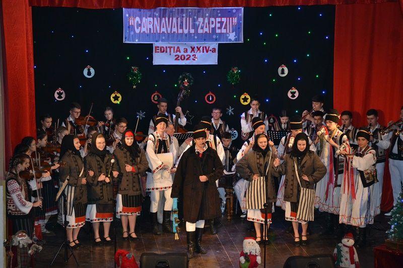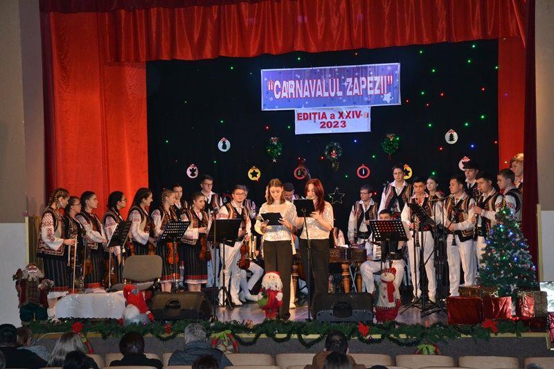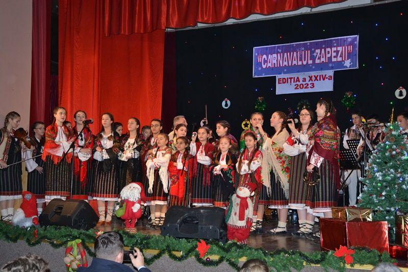 Activitatea educativă „Carnavalul Zăpezii” reprezintă un prilej de a promova pe elevii cu competențe în domeniul cultural-artistic și de a aduce în fața publicului spectator frumoasele tradiții românești de iarnă care ne introduc în atmosfera magică a sărbătorilor.