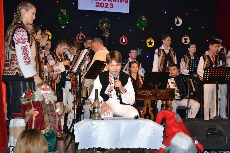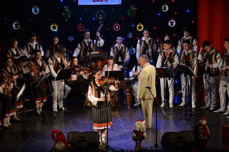 Spectacolul de marți, 19 decembrie 2023, a început cu momente de teatru interpretate de elevi ai cercului „Educație civică – Teatru”, coordonator – prof. Irina-Maria Miron. Seara a continuat cu un regal folcloric, sub bagheta dirijorului prof. Marcel Dupu. Orchestra „Mugurelul”, soliștii acompaniați și grupul vocal „Mugurelul” au cântat colinde, melodii de joc și de ascultare.