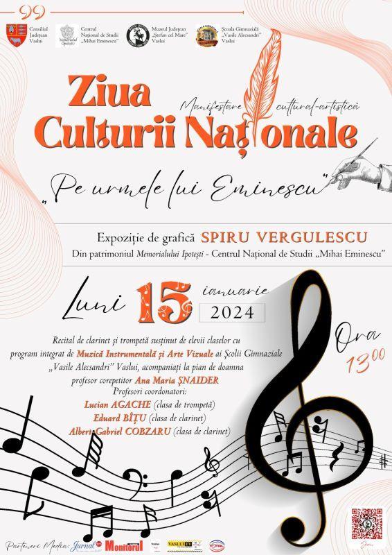 Expoziția este organizată cu ocazia Zilei Culturii Naționale și va fi vernisată, în data de 15 ianuarie 2024, în sala „Arta” a Muzeului Județean Vaslui „Ștefan cel Mare”. Expoziția de grafică „Pe urmele lui Eminescu” conține 101 lucrări din patrimoniul Memorialului Ipotești – Centrul Național de Studii „Mihai Eminescu”, sub semnătura artistului Spiru Vergulescu (1934 – 2007).