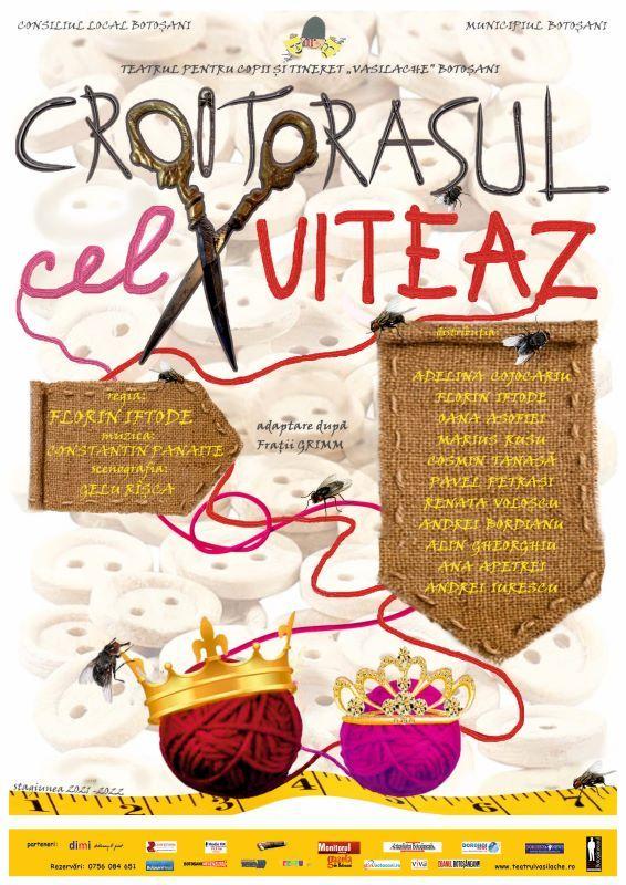 În această săptămână vă invităm la Teatrul pentru Copii şi Tineret „Vasilache” să vizionaţi spectacolul „Croitoraşul cel viteaz”, după Fraţii Grimm, adaptare de Florin Iftode, spectacol  pe care  îl puteţi viziona după următorul program: