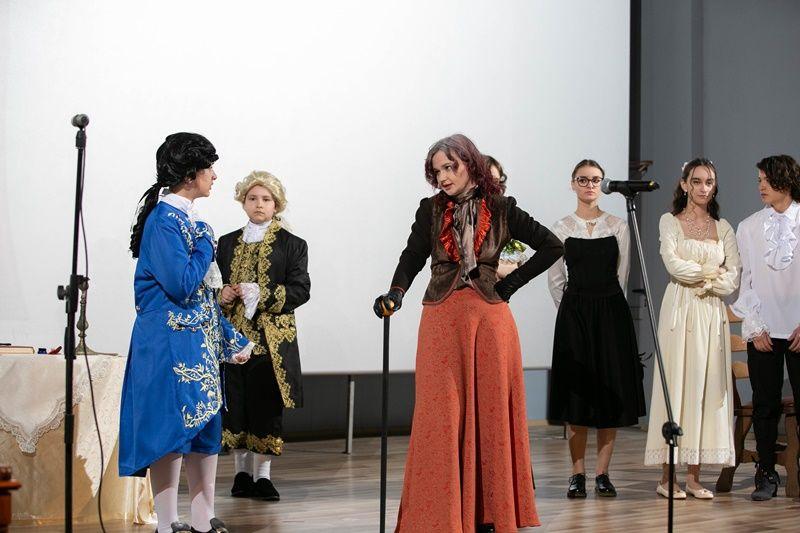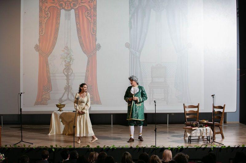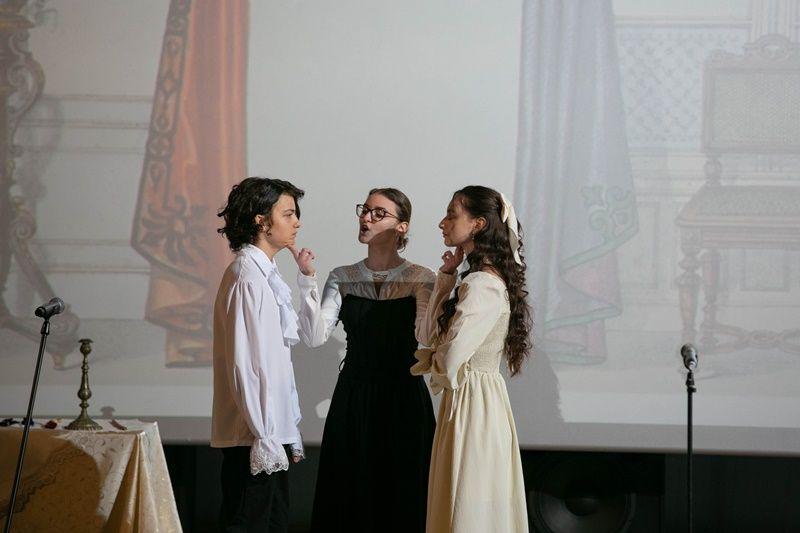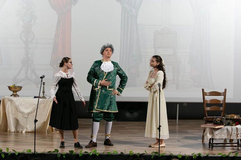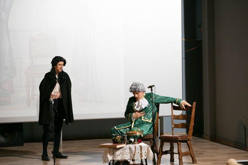 Între cele două spectacole, publicul a urmărit monologul „Doamna Abracadabrantă” din opera „Începem” de I. L. Caragiale, interpretat de eleva Maria Simian.