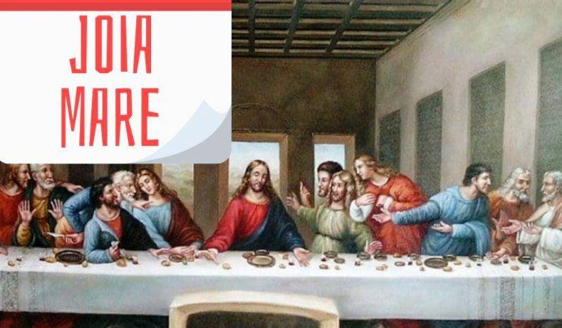 Cina cea de taină. Biblic, acest eveniment este momentul când Iisus prin folosirea vinului şi a pâinii le arată ucenicilor cum urmează să fie jertfit. „Cina Domnului a fost instituită de Iisus Hristos în noaptea în care a fost vândut”, spune apostolul Pavel făcând referire la momentul în care Iuda îl va trăda pe Mântuitor.