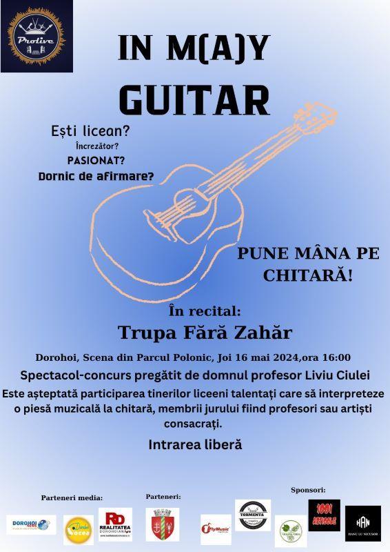Ești licean? Increzător? Pasionat? Dornic de afirmare? Dacă da, atunci vino pe 16.05.2024 în Parcul Polonic la orele 16.00 la spectacolul-concurs IN M(A)Y GUITAR , ediția a II-a organizat și pregătit de domnul profesor Liviu Ciulei.